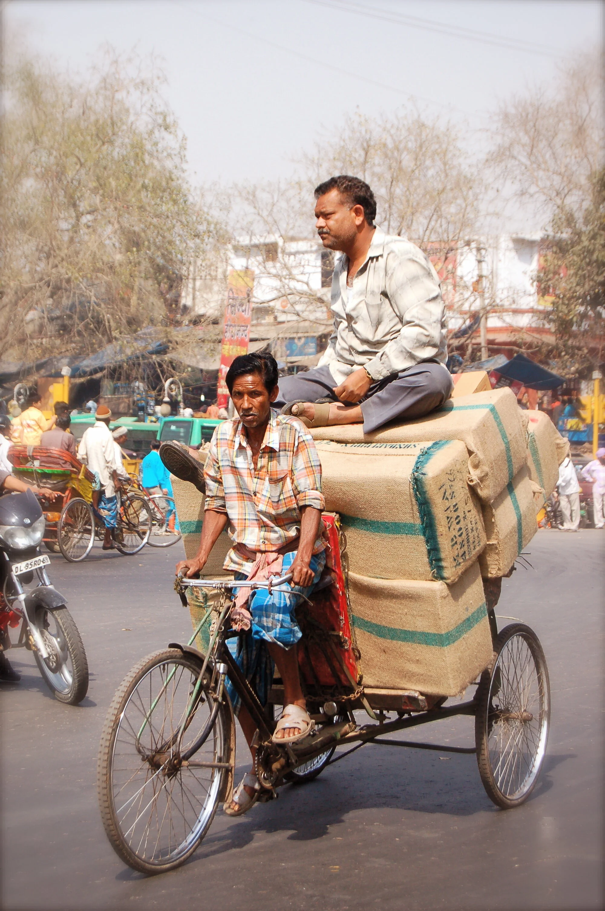 After browsing the market, Naveen flags down a pair of cyclos and we set off for the Jama Masjid, the only mosque in the world where women are allowed. On the way, we take in the sights; the streets crammed with goods and people going about their business in alleyways, doorways, even the narrow spaces between the crush of cars.